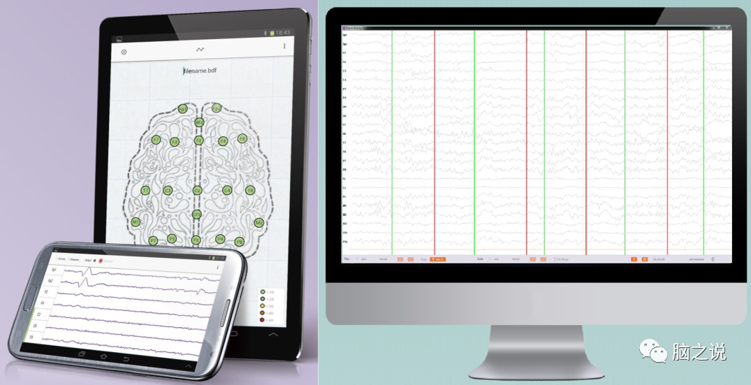 Smarting有两个版本,一个是Smarting mobi,一个是Smarting sleep,前者主要应用于实验室外真实生活场景中的EEG信号记录,后者主要针对睡眠EEG的记录。两个版本的性能参数差别不大,这里以Smarting mobi为例,对其参数进行介绍。*24通道*500MΩ的输入阻抗*>100dB的共模抑制比*250或500Hz的采样率*24位的AD采样分辨率*0-250Hz带宽*抗混叠滤波器*USB或锂电池供电,电池供电可连续采集5个小时(对于Smarting sleep,可以连续采集15小时)*EEG信号通过蓝牙无线传输到电脑或手机(如图3),最大无线传输距离10米*采集器/放大器尺寸仅为82x51x12 mm,重量仅为60g,非常轻巧*采集器/放大器带有3D的陀螺仪,因此可以同时采集被试头动数据(如图4)*手机中的加速度数据也可以同步进行采集*通过手机或者电脑可以很方便地进行阻抗检测、信号的可视化以及手动/自动插入marker等操作*可以进行静息态EEG和任务态ERP数据的采集*应用场景:包括但不限于BCI、户外或运动状态脑电实验、睡眠脑电等领域