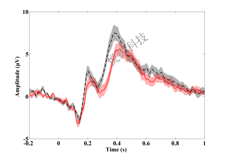 包括ERP成分潜伏期、幅值的计算;ERP波形绘制(如图1所示),ERP成分幅值脑地形图的绘制(如图2所示)。