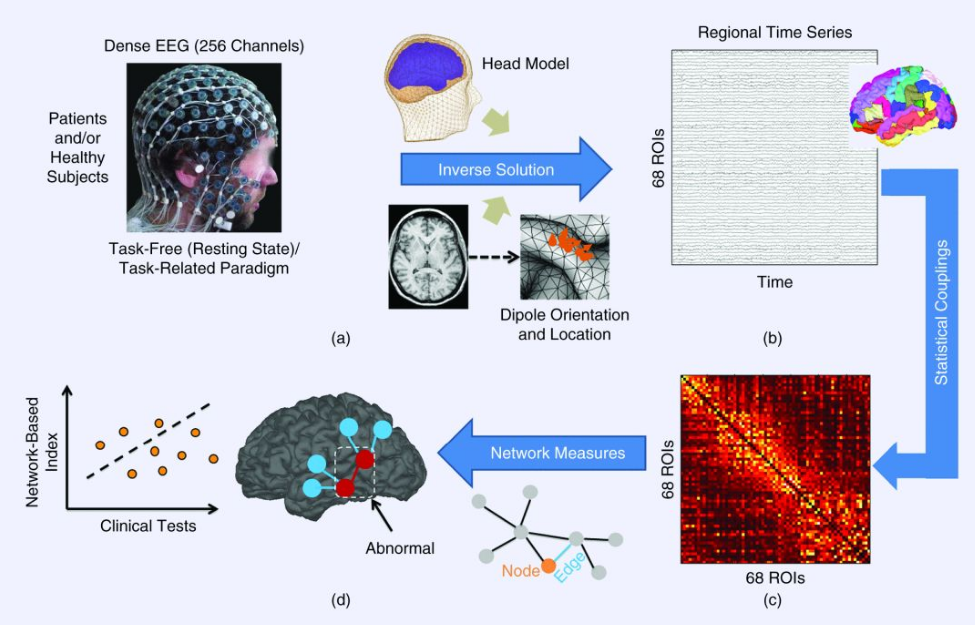 图8 源空间上计算功能连接示意图(图片来源:DOI:10.1109/MSP.2017.2777518)