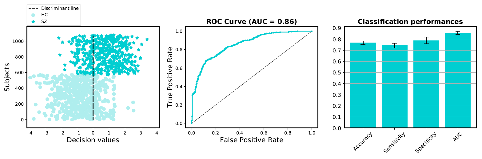 Figure 2. 基于功能连接精神分裂症诊断结果示意图